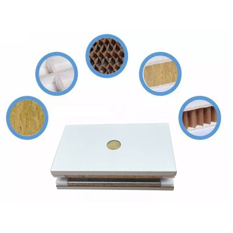 | Core Material | Rock Wool | Aluminum Honeycomb | MgO | Fiberglass Mesh Reinforced MgO | MgO Board+ Rock Wool | Gypsum Board+ Rock Wool | MgO Board+ Aluminum Honeycomb | Gypsum Board+ Aluminum Honeycomb | |